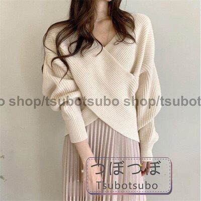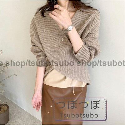 【beifengzh 0 ng】新作ニットセーター レディース 秋冬 40代 トップス 長袖 不規則 セーター ニットソー vネック 韓国風 ショート丈 ニットトップス ゆったり カジュアル オシャレ