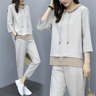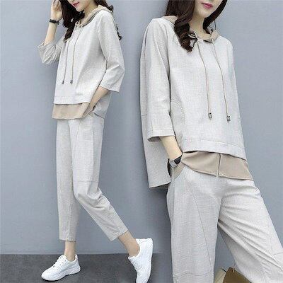 セットアップ レディース 秋新作 スウェットセット スポーツウェア 2点セット 七分袖バーカー ロングパンツ 運動着 ジャージセット カジュアルオシャレ 40代-524