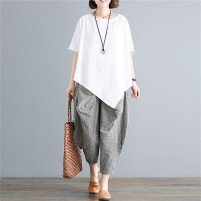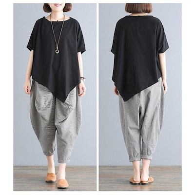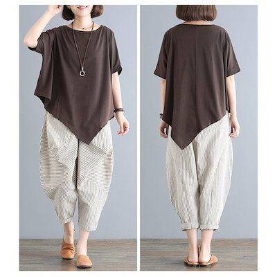セットアップ レディース ブラウス トップス ガウチョパンツ サルエルパンツ 九分丈 2点セット ゆ