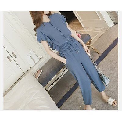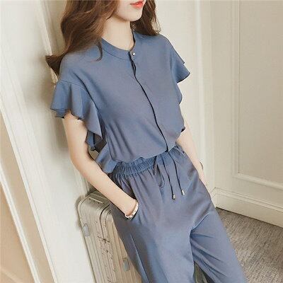激安 セットアップ レディース パンツ 上下セット 2次会 涼しい ブラウス ゆったり フリル 体型