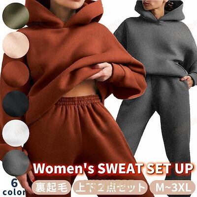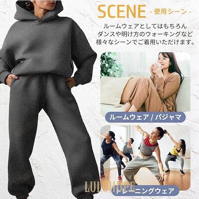 [PassionateRob0ts]スウェット 上下セット 裏起毛 レディース 秋冬 大きいサイズ セットアップ M L XL 2XL 3XL ルームウェア ウォーキング トップス パンツ 暖かい 保