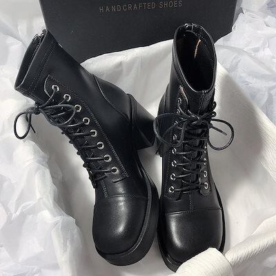 本日の限定商品2024秋 新作 新品登場 マーティンブーツ ブーツ ミドルヒール 太ヒール スクエア靴 ーシューズ ヒール レディース 通勤通学 かわいい 美脚厚底 大人気 ショートブーツ 福袋