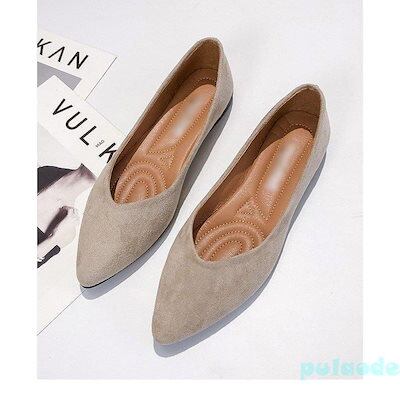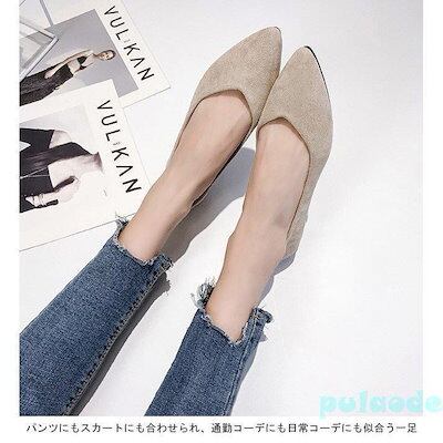 パンプス ポインテッドトゥ レディース フラットシューズ ローヒール シューズ PUパンプス シンプル 女性 靴 お洒落 通勤 レトロ くつ