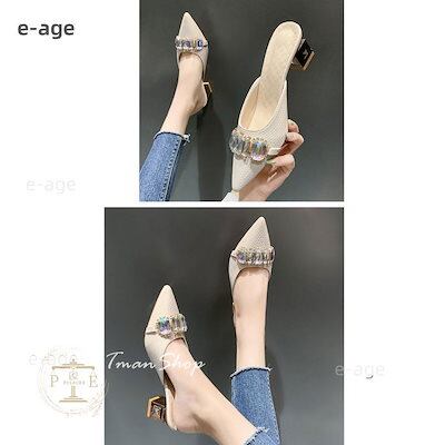 パンプス ミュール レディース ブロックヒール ポインテッドシューズ ピンヒール ラインストーン飾り キラキラ おしゃれ 疲れにくい 歩きやすい 美脚 春秋夏