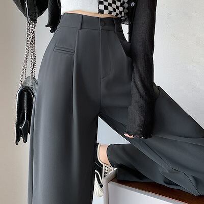 パンツスーツ ワイドパンツ 垂れ感 ストレート 着痩せ レディース 秋 ストレート ドラッグパンツ ドレープ カジュアル ワイドパンツ