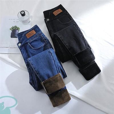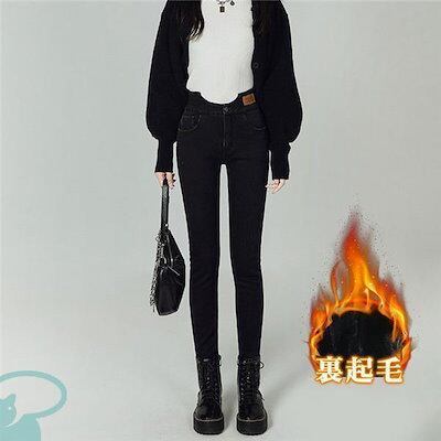 デニム スキニーパンツ 裏起毛 レディース 秋冬 ストレッチ あったかい ハイウエスト ジーンズ 細身 ボ カジュアル ジョギング ヨガ 通勤