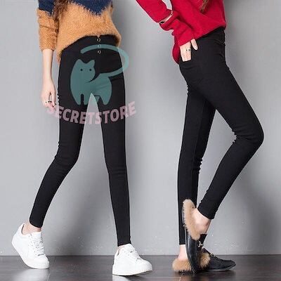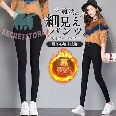 スキニーパンツ レディース スリム 裏起毛あり 暖かい ストレッチ 大きいサイズ 9分丈 ジーパン 美脚 ボ 黒 寒さ対策 防寒 無地