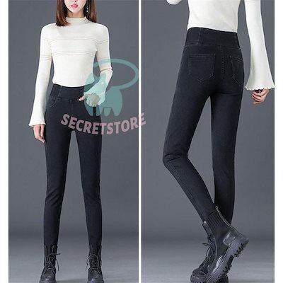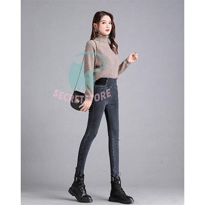 スキニーパンツ レディース デニム ハイウエスト ジーンズ ストレッチ 裏起毛あり 10分丈 ジーパン 美脚 ボ 大きいサイズ 無地