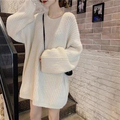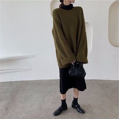 パーティードレス ニットワンピース 韓国ファッション秋冬 厚手 丸ネック ニットトップス ゆったり トップス ニット ベーシックニット ワンピース