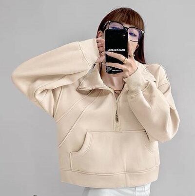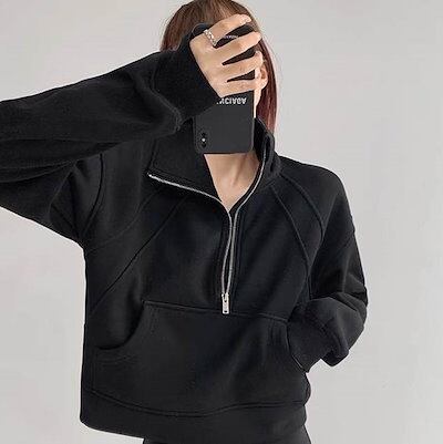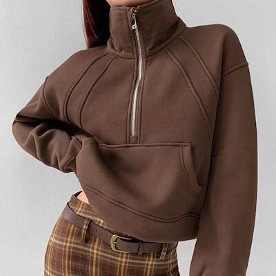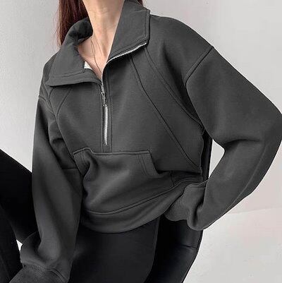 プルオーバー パーカー 長袖 フェミニン ストリート レディース ポケットハーフジップ フード付き 大人可愛い きれいめ シンプル カジュアル レトロ ラフ メンズライク マニッシュ ボーイッシュ ス