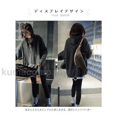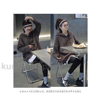 ニットパーカー レディース ニットセーター フード付き オーバーサイズ ニット セーター ドロップショルダー 重ね着風 ニットトップス プルオーバー