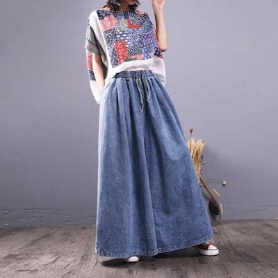 ゆったり デニムパンツ ワイドパンツ 大きいサイズ ジーパン レディース デニム スカーチョ スカンツ ウェストゴム 無地 薄手 春夏秋 ガウチョパンツ スカート見えパンツ フレアパンツ キュロットパ