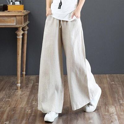 リネン パンツ ワイドパンツ フレア ロングパンツ 綿麻 ガウチョパンツ 体型カバー レディース ゆったり 大きいサイズ 韓国ファッション