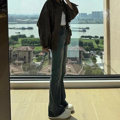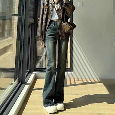 マイクロフレアジーンズ レディース 夏 新しいスタイル 洋梨体型 大きいサイズ ゆったり ハイウエスト スリム ストレッチ ワイドレッグ 馬蹄パンツ