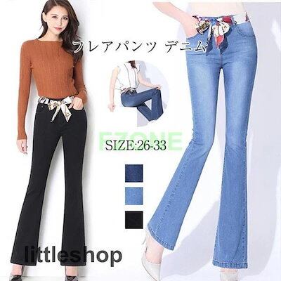 フレアパンツ レディース デニムパンツ ハイウエスト ボトムス ジーンズ ブーツカット スキニー スリム オフィス 通勤 OL 美脚