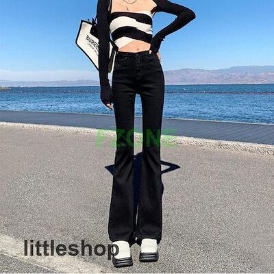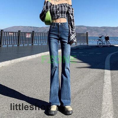 フレアデニムパンツ レディース ロングパンツ 大きいサイズ スキニー ハイウエスト ストレッチ ジーンズ オフィス 普段着 お出かけ 脚長効果
