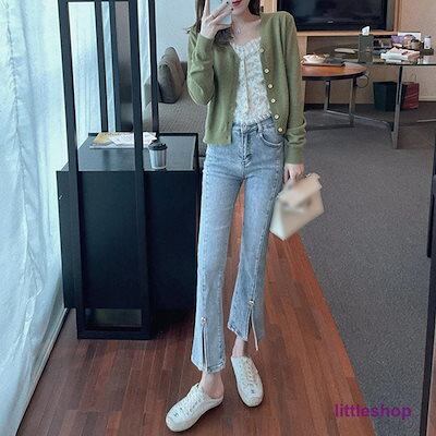 スリットデニムフレアパンツレディース韓国 レディース