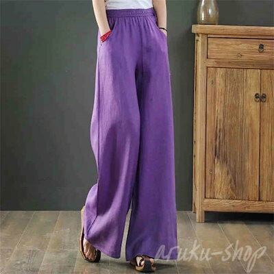ガウチョパン ロングパンツ ワイドパンツ レディース リネン 美脚ワイドパンツ 綿麻パンツ 麻 秋 綿麻パンツ リラックス 亜麻 ボトムス バギーパンツ フレアパンツ 麻混 パンツ ロング丈 ゆったり