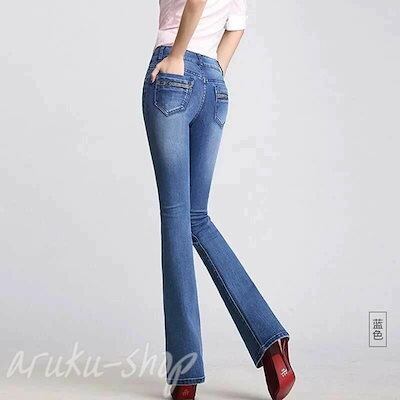デニムパンツ レディース 秋冬 大きいサイズ ロングパンツ デニムロングパンツ ストレッチ デニム スキニー デニム パンツ ハイウエスト フレアパンツ ボトムス スキニー ジーンズ デニムスキニー