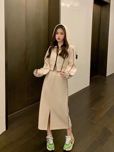春 新作上下セット セットアップオールインワンセットアップ スウエット+スカート 二点セット 百掛け ジャージ 韓国 ins レディース レトロ カジュアル