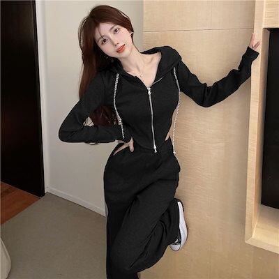 新作 レディース 上下2点セット スポーツウェア ジャージ セットアップ 長袖 フード付きパーカー+スウェットパンツ 運動服 カジュアル