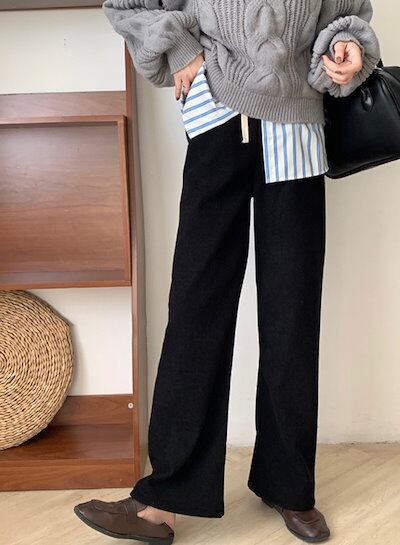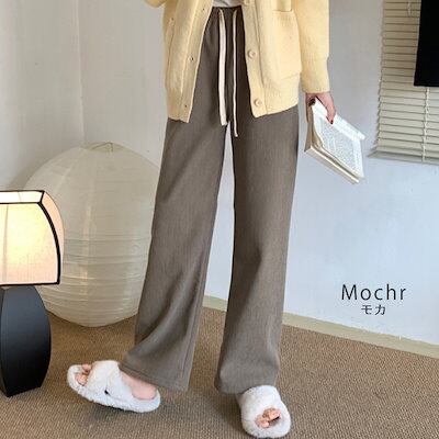 秋冬 裏ボア ハイウエスト ロングパンツ ゆったり レディース ボアパンツ あったかいパンツ ワイドパンツ ズボン コーデュロイ 裏起毛パンツ あったかい ウエストゴム パンツ 裏起毛 無地 ストレー