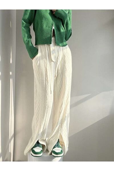 ニット 厚手 ゆったり ロング ニットパンツ ケーブルニット イージーパンツ あったか 秋冬 保暖 裏地付き ポケット きれいめ ワイド ゴム ワイドパンツ レディース ボトムス ハイウェスト パンツ