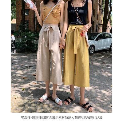 クロップドパンツ レディース ワイドパンツ 体型カバー サマーパンツ 7分丈パンツ ゆったり ガウチ