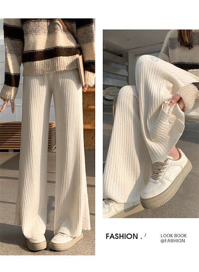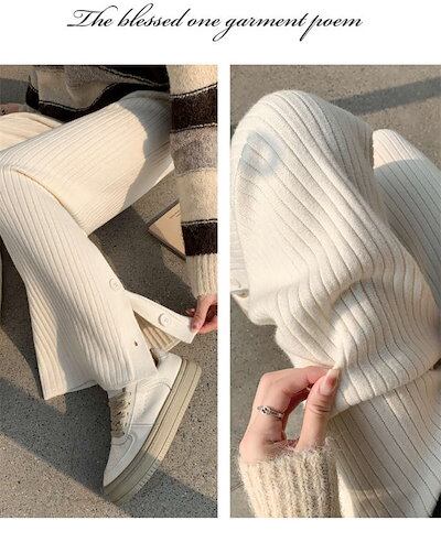 ハイウエスト フレア パンツ ワイドパンツ フレアパンツ ワイド 無地 レディース ゴム ボトムス サイドスリット ニットパンツ ワンマイルウェア きれいめ ガウチョパンツ リブニット ゆったり ロン