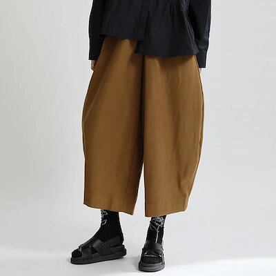 【J.Fashion】 秋冬 レトロ サルエルパンツ レディース ワイドパンツ スラックス ゆる 九分丈 厚手 レディース ロングパンツ メガ割