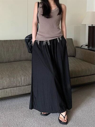 ワイドパンツ ガウチョパンツ スカート見える レディース フレアパンツ 涼しい ロングパンツ 爽やか ウエストゴム バギーパンツ ギャザー 大きいサイズ ゆったり リラックス ビーチ 海 爽やか