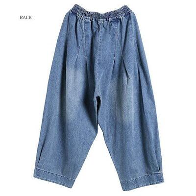 サルエルパンツ デニムパンツ デニム サーカスパンツ レディース ウエストゴム Gパン 一部 ガウチョ ワイドパンツ お洒落 ゆったり カジュアル