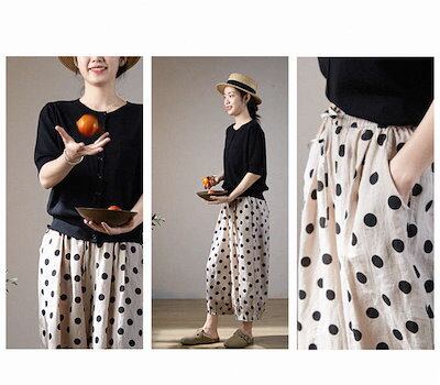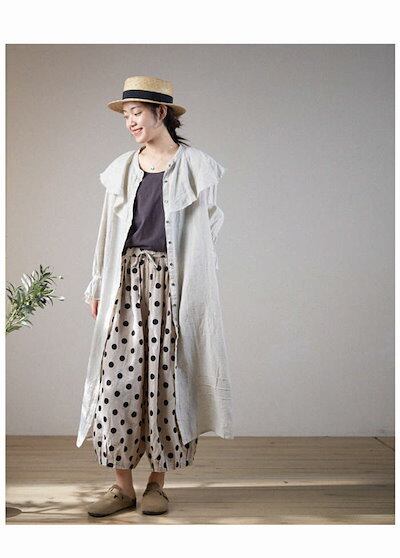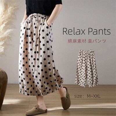 パンツ 綿麻 レディース ボトムス 春夏 ロング きれいめ ボールパンツ ワイドパンツ イージーパンツ バルーンパンツ サーカスパンツ サルエルパンツ ルームパンツ ゆるパンツ 水玉柄 水玉 ゆったり