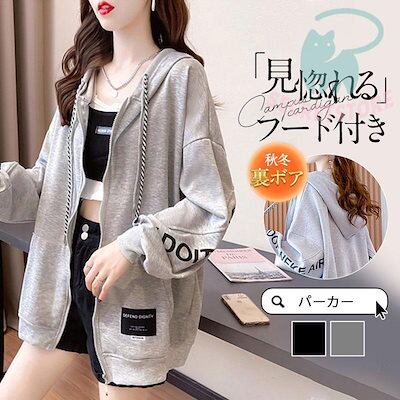 パーカー トレーナー レディース フード付き 薄手 厚手 裏ボア 裏起毛 長袖 秋服 秋冬 ジッパー ジップアップ カットソー カジュアル ゆったり30%までに制限