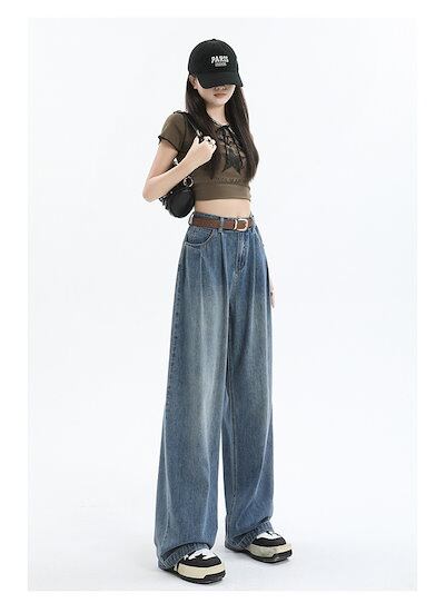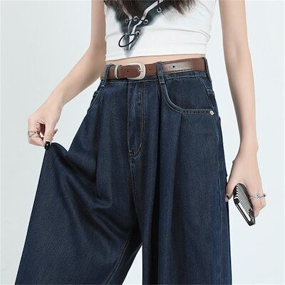デニムワイドパンツ 春夏 レディース デニムパンツ パンツ ジーパン ボトムス ワイドルーズ ロングパンツ デニムパンツ 長ズボン ジーンズ 大人カジュアル ハイウエスト 大きいサイズ ゆったり 体型