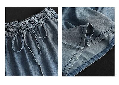 デニム パンツ レディース ワイドパンツ ひんやり ボトムス デニムパンツ 春 夏 ワイド ルーズ フレアパンツ ジーンズ ジーパン 体型カバー ズボン ゆったり ゴム 9分丈 ストレート 楽ちん 無