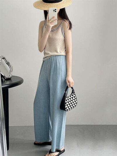 デニム パンツ レディース ワイドパンツ 薄手 夏 春 ボトムス ズボン ジーンズ 柔らか ストレートパンツ 大人 ゆったり ワイド 楽ちん リラックス シンプル カジュアル きれいめ お洒落 体型カ