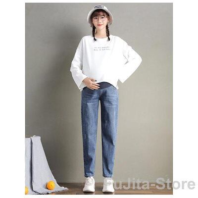 デニム パンツ 裏起毛パンツ マタニティ ロングパンツ レディース テーパードパンツ ストレッチ もこもこ マタニティボトム ウエストゴム