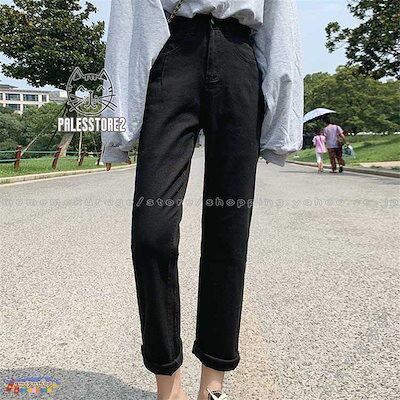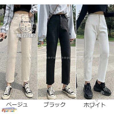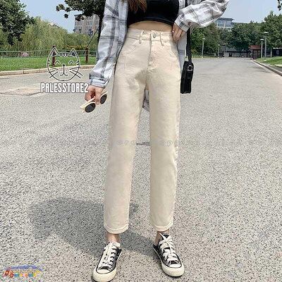 ハイウエスト ベージュ ジーパン デニムパンツ 韓国風 オシャレ お出かけ デニム パンツ ストレート 着痩せ レディース 物 ホワイト ロング丈 細身 着痩せ 9分丈パンツ