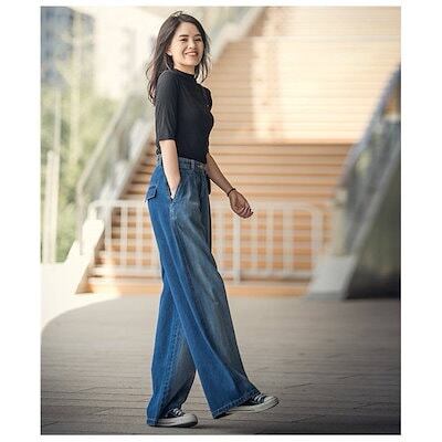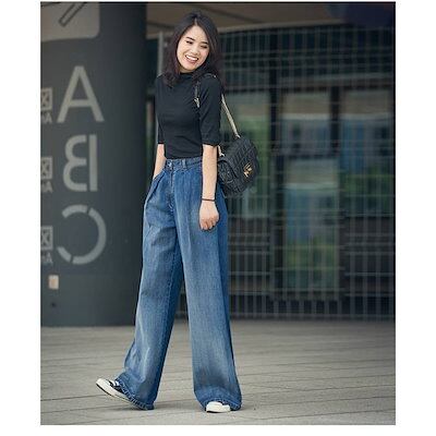 パンツ デニム レディース 秋 ボトムス ジーンズ ズボン ジーパン ガウチョパンツ ワイド バギーパンツ ハイウエスト ロング丈 ストレートパンツ