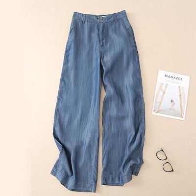 ワイドパンツ デニム ガウチョ レディース ロング ハイウエスト ジーンズ ジーパン 大きい 美脚 脚長効果 着痩せ 大人 ボトムス ズボン ゆったり