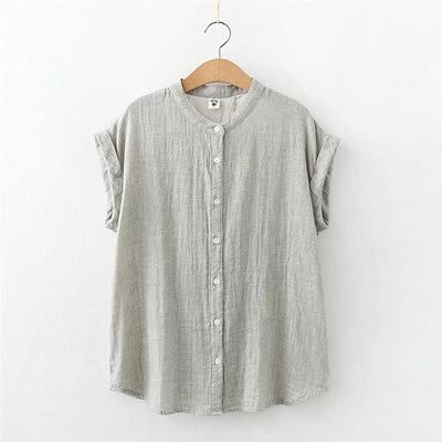 ブラウス シャツ 夏 半袖 レディース ガーゼ ブラウス レディース ホワイト ストライプ柄 チェック柄 コットン 綿 通気性 シンプル 折り襟 大きいサイズ