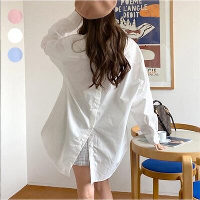 シャツ レディース 白シャツ ガーゼ ブラウス 長袖 オシャレ 柔らか シンプル 折り襟 春 夏 オフィス トップス 無地 可愛い 通勤 通学 ゆったり フォマル