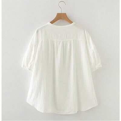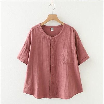 シャツ レディース 夏 半袖 ガーゼシャツ ブラウス レディース ホワイト シャツブラウス コットン 綿 通気性 シンプル 折り襟 大きいサイズ 着心地 体型カバー