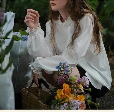 ブラウス レディース 長袖 シャツ スーツ インナー 白シャツ スタンドカラー 襟レース トップス フォーマル 無地 オフィス ビジネス 立ち襟 春秋 お洒落 通勤 カジュアル OL おしゃれ シンプ