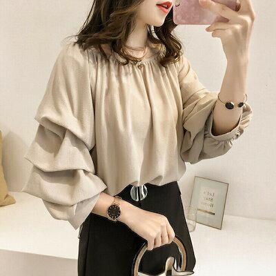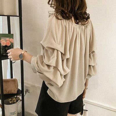 シアートップスボリューム袖ボリュームスリーブフリルブラウスラウンドネック袖フリル襟フリルチュニックトップス透け感チュールレディース上品カジュアルお出かけデート
