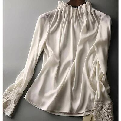 ブラウスフリル立ち襟シャツ長袖レディーストップスレース花柄シャツブラウス春夏秋レースブラウスtシャツハイネックブラウススタンドカラー