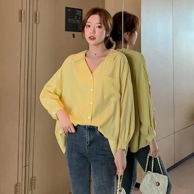 レディースブラウスシャツブラウス長袖Vネックゆったり無地ブラウス長袖折り襟ポケット付きボタン付きキレイめ定番ツヤ感キレイめシンプルお洒落すっきり大人こなれ感トップス春夏春作