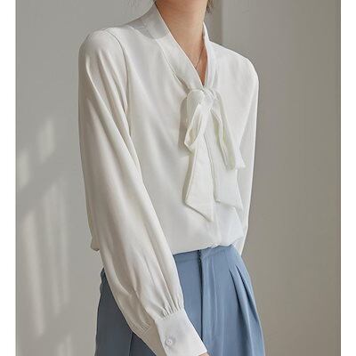 ブラウス レディース シャツブラウス 春 秋 サテン セレモニー サテンブラウス 立て襟 蝶結び デザイン感 フランス風 通勤 OL フォーマル 長袖 ボリューム