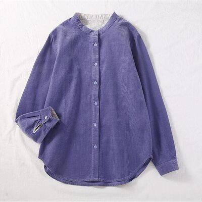 シャツ ブラウス長袖 レディース コーデュロイ 体型カバー ゆったり カジュアル おしゃれ 大人 かわいい 通勤 OL 春 秋 冬 折り襟
